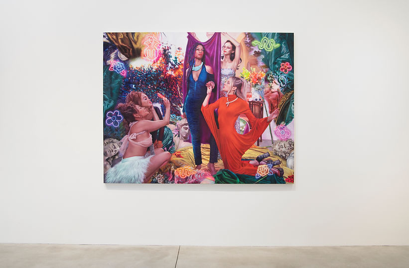 The Kravets Wehby Gallery will open an exhibition of new paintings by Alison Blickle on Thursday, November 17, 6-8PM. In her latest body of work, Blickle reclaims ancient myths reimagining them in modern-day LA. Blickle’s Medusa lives with her sisters in a house in the Hills that once belonged to Hollywood Sweetheart, Cary Grant. The sisters throw parties and perform rituals turning toxic dudes to stone. They started raving after Blickle’s Medusa is gifted with a head of snakes and coagulating stare that only affects men. The insta-ready sisters celebrate this new ability and form stronger bonds while seeking revenge together.