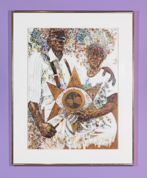 Jeff Donaldson’s vision, “positivity for the people,” has come to life in his work from 1963 until his death in 2004. Donaldson’s legacy looms large, as a founder of AfriCOBRA, chair of the art department at Howard University, and Vice President of the Barnes Foundation, his accomplishments and creativity are limitless. Civil rights activist, artist, and scholar, Jeff’s work has been reborn through exhibitions like “Soul of a Nation”, “AfriCOBRA: Now”, and “Dig”, which shows the breadth and diversity of his practice, from watercolor to collage, and oil to acrylic. His political themes and meticulous execution result in unflinching beauty.